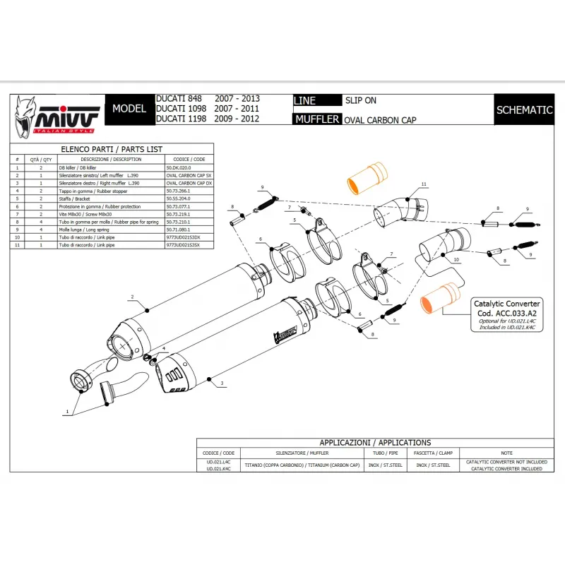 Mivv Ducati 1198 09 - 2012 Terminali Di Scarico Per Moto Marmitte Oval Titanio Carbon Cap