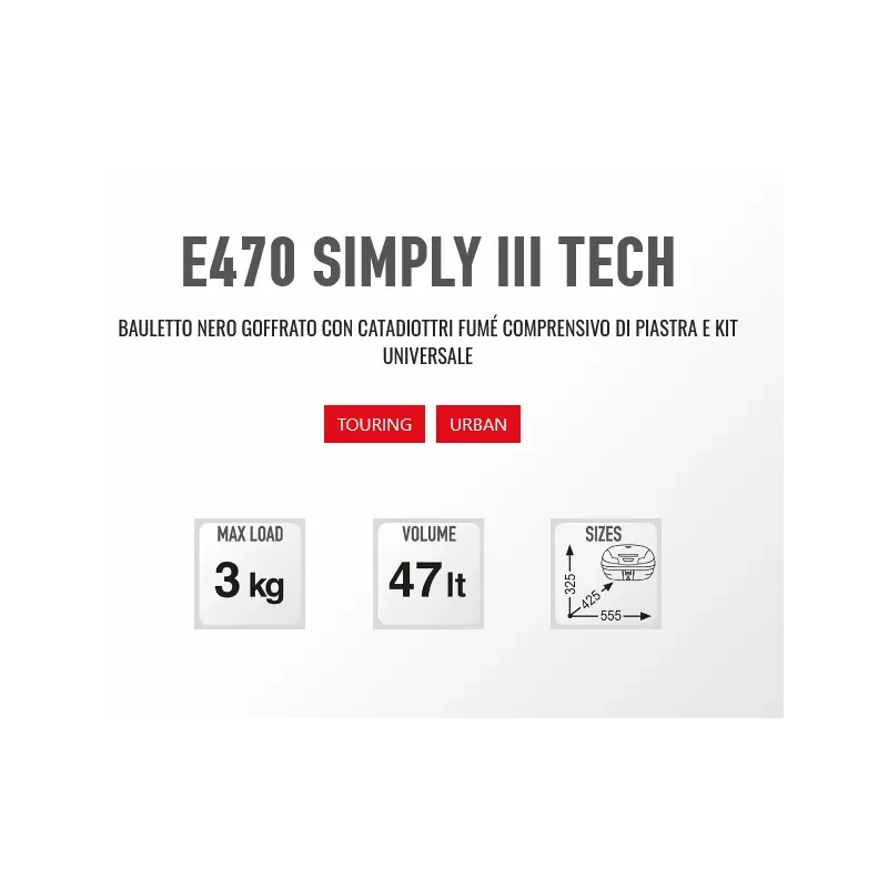 Bauletto Moto Givi 47 Litri Monolock SIMPLY III TECH Con Piastra E470TN Moto Scooter