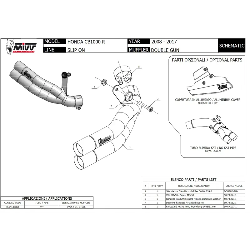 Mivv Honda Cb 1000 R 08 - 2017 Terminale Di Scarico Moto Marmitta Double Gun Inox