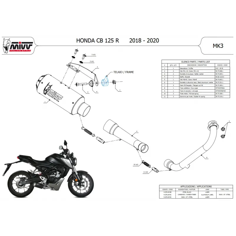 La linea MK3, frutto dell’esperienza acquisita nei Campionati mondiali Moto3 e Moto2, è la perfetta sintesi tra performance e tecnologia. Dal design simile agli scarichi realizzati per il Motomondiale Moto3, il terminale MK3 offre dimensioni compatte e la capacità di sprigionare l’accattivante sound MIVV.