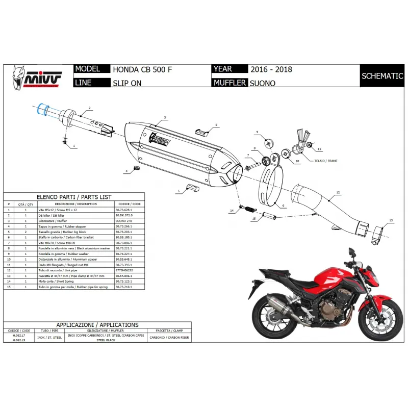 Mivv Honda Cb 500 F 19 - 2024 Terminale Di Scarico Moto Marmitta Mk3 Carbonio