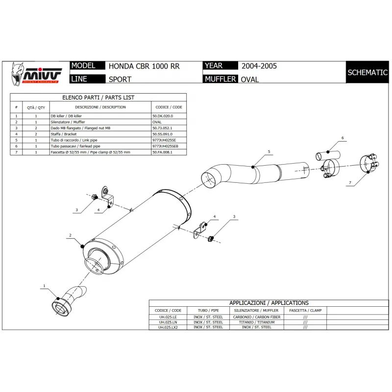 Mivv Honda Cbr 1000 RR 04 - 2005 Terminale Di Scarico Moto Marmitta Oval Inox Omologato