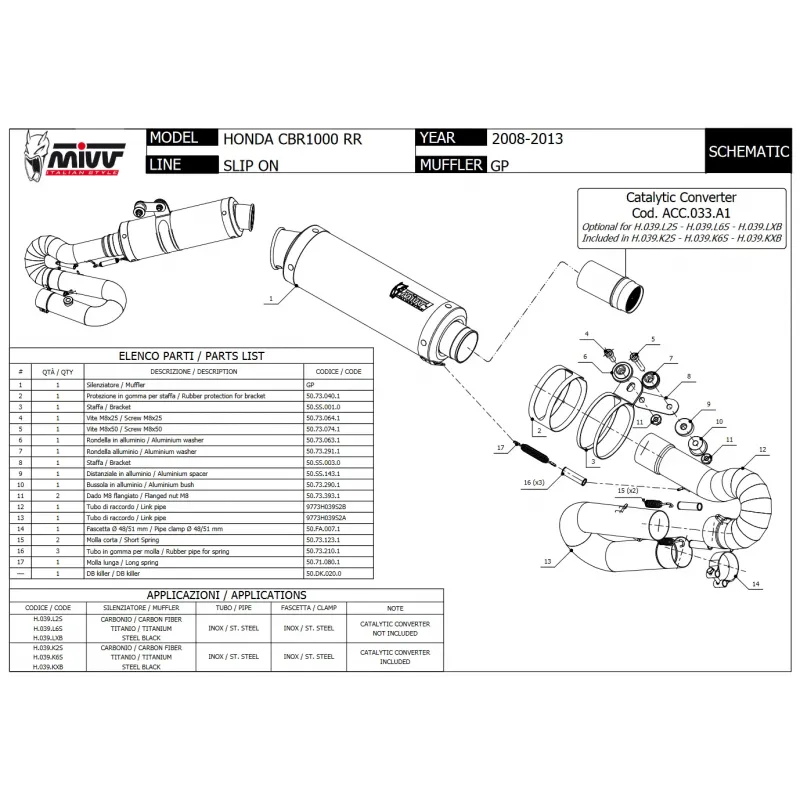 Mivv Honda Cbr 1000 RR 08 - 2013 Terminale Di Scarico Moto Marmitta GP Inox Nero