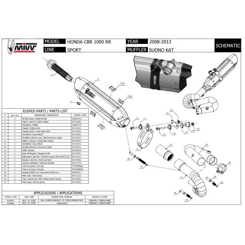 Mivv Honda Cbr 1000 RR 08 - 2013 Terminale Di Scarico Moto Marmitta GP Carbonio