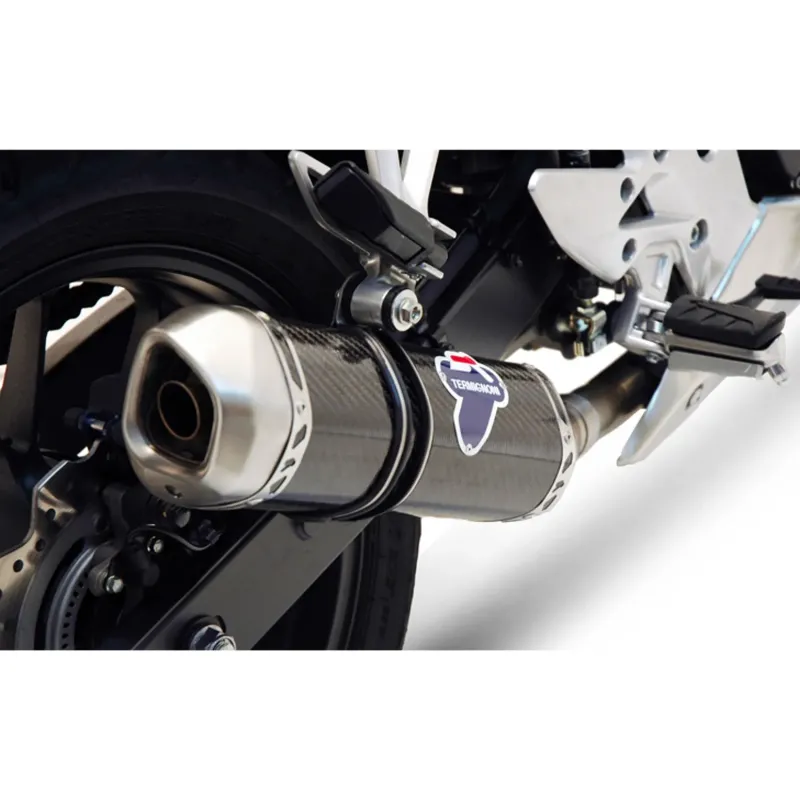 Lo scarico è composto da una struttura principale e fondello in acciaio, con camicia in Carbonio per offrire un’estetica maggiormente dedicata alla tua moto e un notevole risparmio di peso.