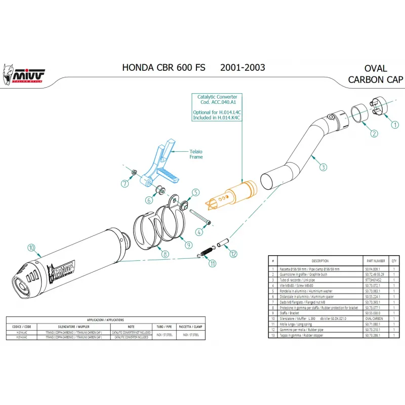 Mivv Honda Cbr 600 FS 01 - 2003 Terminale Di Scarico Moto Marmitta Oval Titanio Carbon Cap