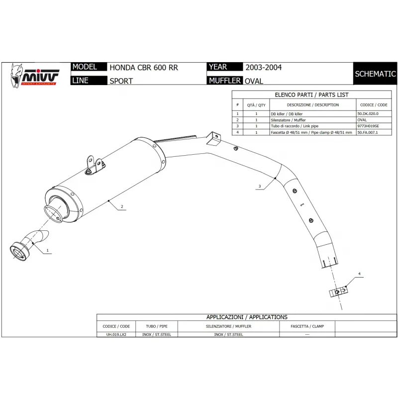 Mivv Cbr 600 RR 03 - 2004 Honda Terminale Di Scarico Moto Marmitta Ovale Inox