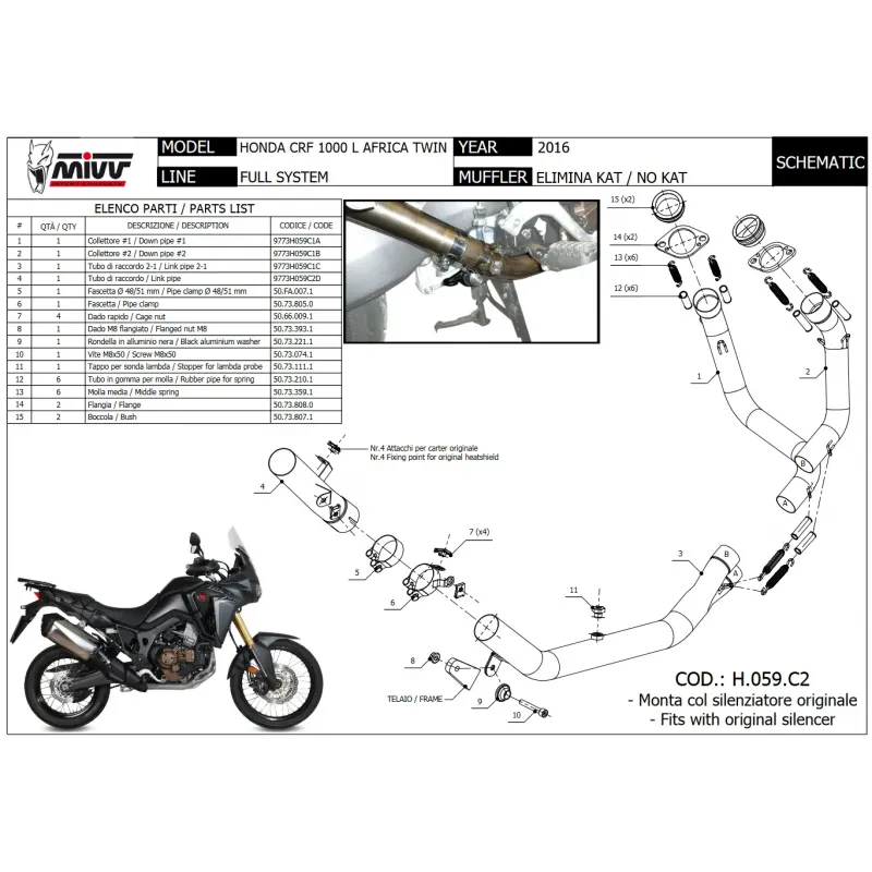 Honda Crf 1000 L Africa Twin Collettori Di Scarico Tubo Elimina Kat Catalizzatore Moto...