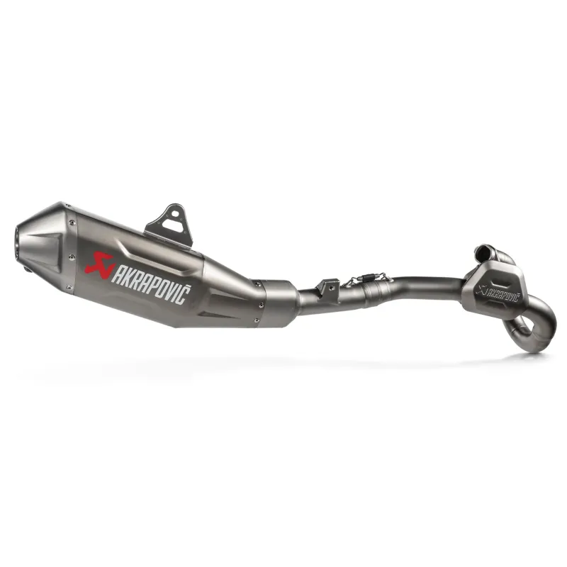 Costruito con leghe di titanio leggere, di alta qualità e premium, con diversi spessori nelle sezioni per garantire una protezione perfetta e per ridurre il peso complessivo, il sistema è più leggero del 26,5% rispetto allo scarico di serie. Una nuova superficie profilata influenza il suono per soddisfare i limiti di rumore FIM per le competizioni e aggiunge forza e durata alla marmitta offrendo al contempo un suono profondo e pieno che abbraccia il polso bilanciato del motore monocilindrico.