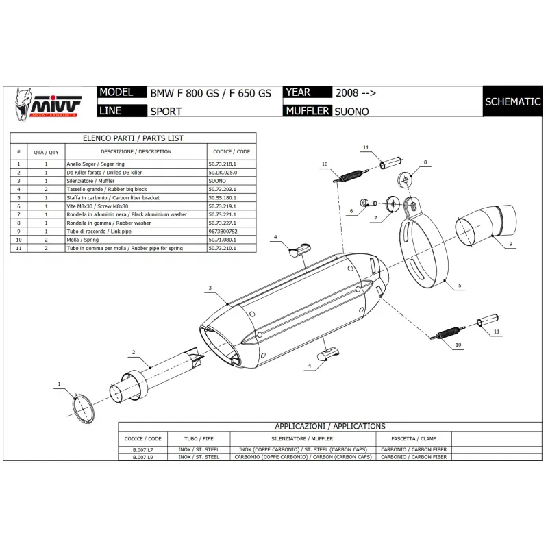 Mivv Bmw F 650 GS Terminale Di Scarico Per Moto Marmitta Suono Inox Nero