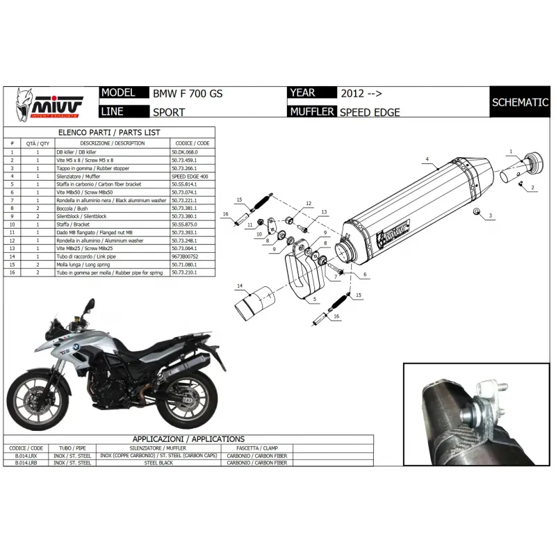 Mivv Bmw F 700 GS 12 - 2017 Terminale Di Scarico Moto Marmitta Speed Edge Inox Nero