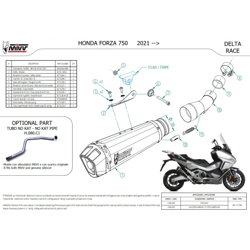Lo scarico DELTA RACE è caratterizzato da un’esclusiva forma che, attraverso una graduale trasformazione, da conica diventa esagonale. Tanti sono i dettagli che ne rendono lo stile unico, come il fondello in carbonio twill 3K; la fascetta perimetrale con doppia rivettatura; la boccola di ingresso ricavata dal pieno, per offrire la massima precisione di accoppiamento. Sul terminale è presente il caratteristico logo Mivv realizzato tramite laser.