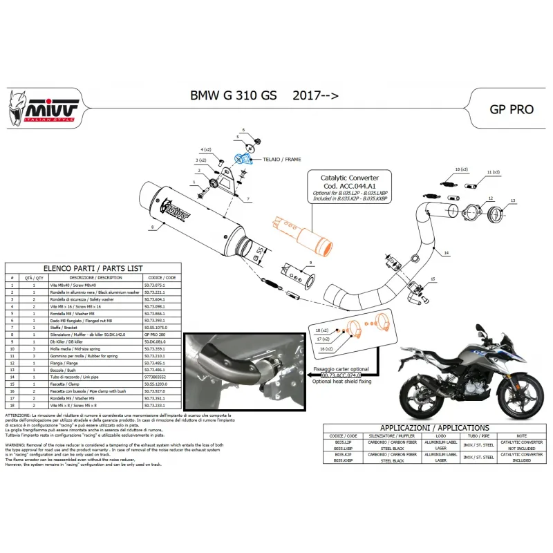 GP PRO mostra una saldatura a TIG semiartigianale, un design compatto ed essenziale e un sound aggressivo. Ispirato al mondo delle competizioni, il tubo in uscita dello scarico è dotato di una grata di protezione removibile che nasconde il dB-killer. Sul terminale è presente il caratteristico logo Mivv realizzato tramite laser.