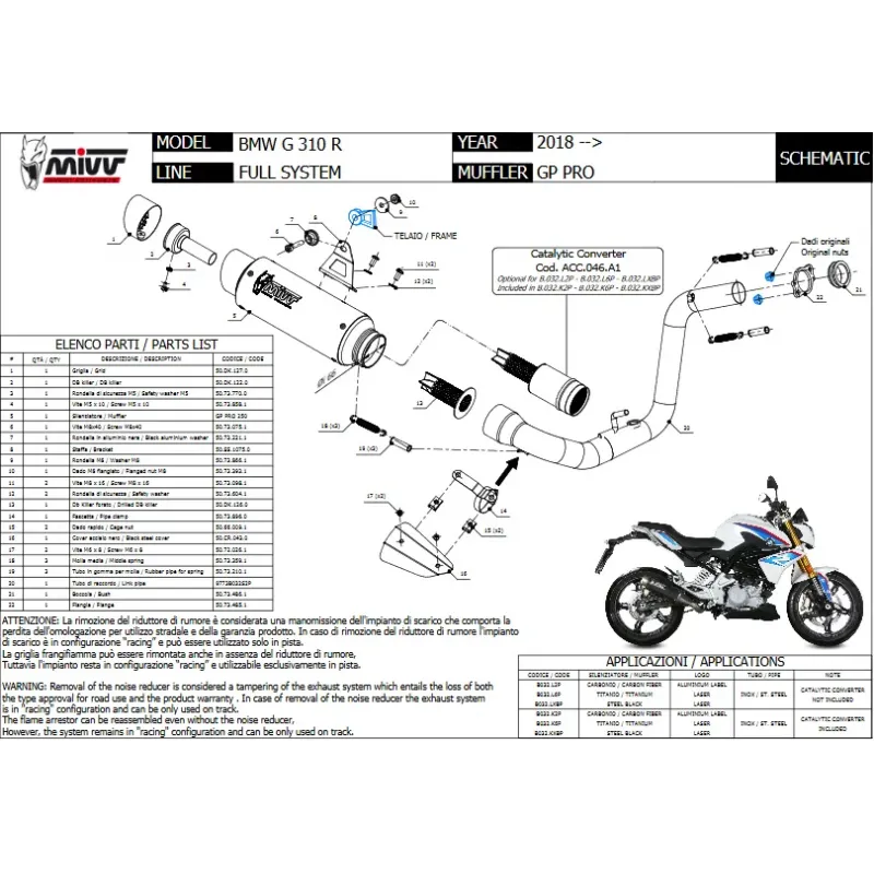 GP PRO mostra una saldatura a TIG semiartigianale, un design compatto ed essenziale e un sound aggressivo. Ispirato al mondo delle competizioni, il tubo in uscita dello scarico è dotato di una grata di protezione removibile che nasconde il dB-killer. Sul terminale è presente il caratteristico logo Mivv realizzato tramite laser.