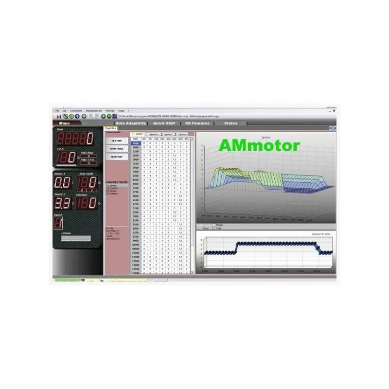 La centralina aggiuntiva Rapid Bike RACING è stata progettata per essere un punto di riferimento nel settore agonistico e rappresenta la tecnologia più evoluta per spingere una moto al top delle prestazioni, grazie a soluzioni tecniche uniche come la gestione del segnale della fase albero motore. Siamo partiti dal controllo completo della carburazione della Rapid Bike EVO ed abbiamo aggiunto tutte le funzionalità che servono per essere un punto di riferimento nel settore agonistico: