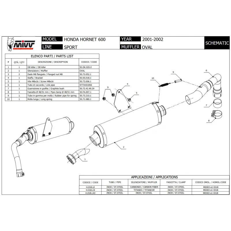 Mivv Honda Hornet 600 01 - 2002 Terminale Di Scarico Moto Marmitta Ovale Inox
