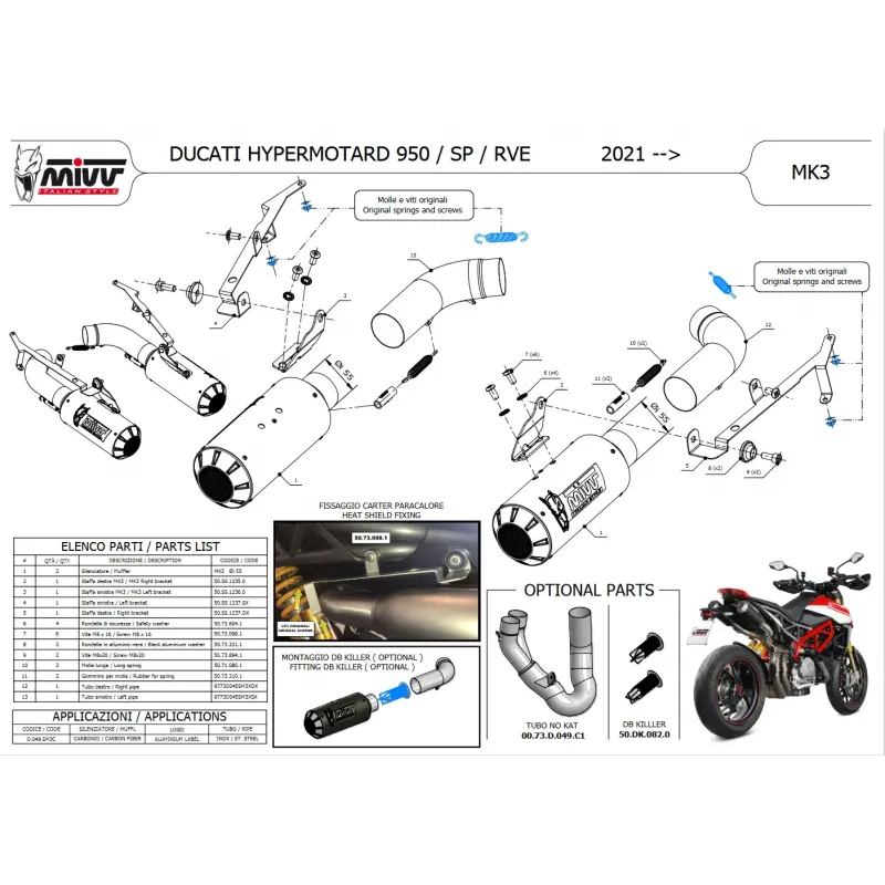 Mivv Ducati Hypermotard 950 / SP 21 - 2023 Terminali Di Scarico Per Moto 2 Slip-On Mk3 Carbonio