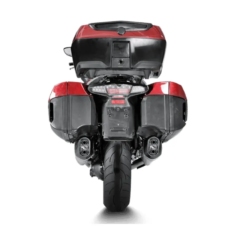 Viaggia con stile con il sistema di scarico Akrapovič Slip-On per questa motocicletta da turismo top di gamma. Riconoscerete questo sistema grazie al suo design unico, che viene eseguito in modo eccezionale utilizzando materiali di alta qualità come il titanio e la fibra di carbonio per i tappi delle prese. Allo scopo di rendere i viaggi lunghi esperienze sonore piacevoli, gli ingegneri di Akrapovič hanno introdotto ulteriori miglioramenti del suono per questo raffinato motore a sei valvole con questo sistema Slip-On. Il sistema di scarico è compatibile con le borse laterali BMW.