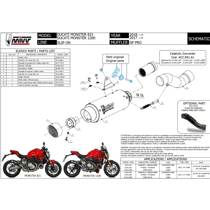 Mivv Ducati Monster 1200 17 - 2021 Terminale Di Scarico Moto Marmitta Gp Pro Titanio
