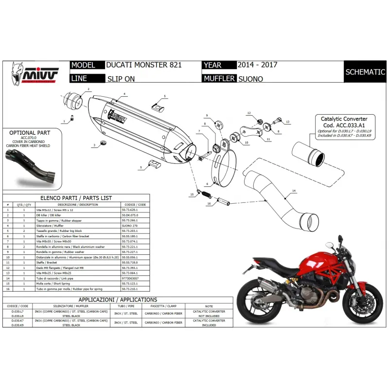 Mivv Ducati Monster 821 14 - 2017 Terminale Di Scarico Moto Marmitta Suono Inox