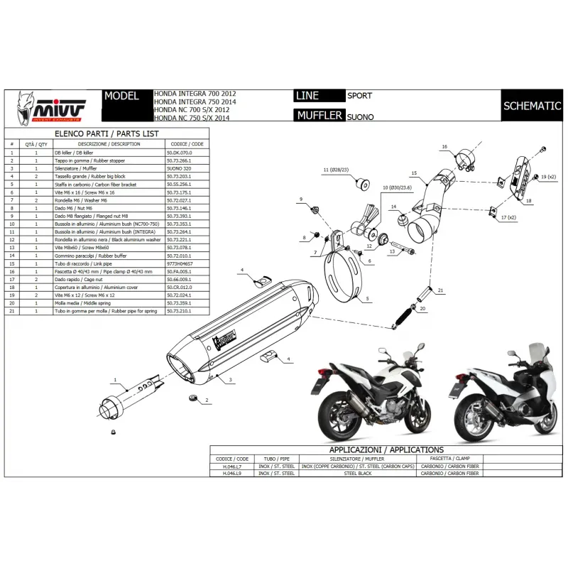 Mivv Honda NC 750 S / X 14 - 2015 Terminale Di Scarico Moto Marmitta Suono Inox Nero Omologato
