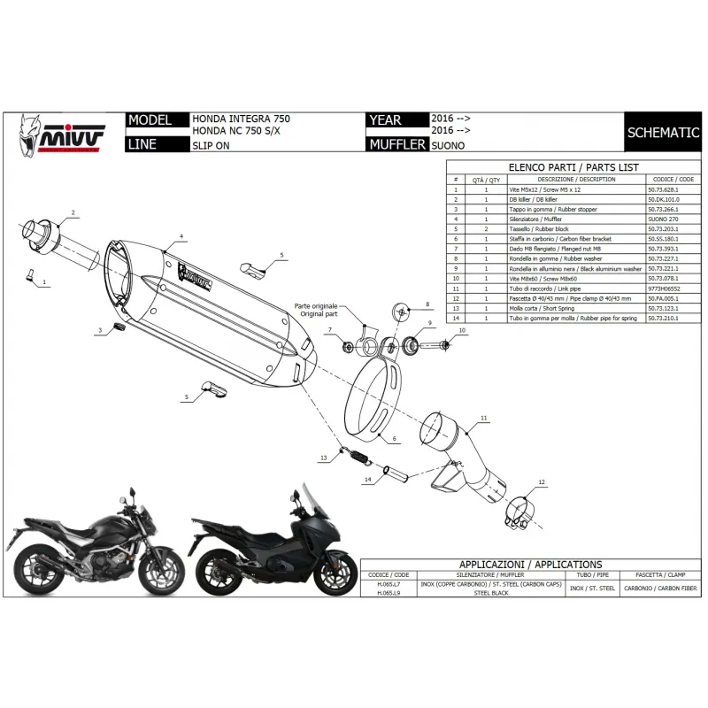 Mivv Honda NC 750 S / X 16 - 2022 Terminale Di Scarico Moto Marmitta Suono Inox Nero Omologato