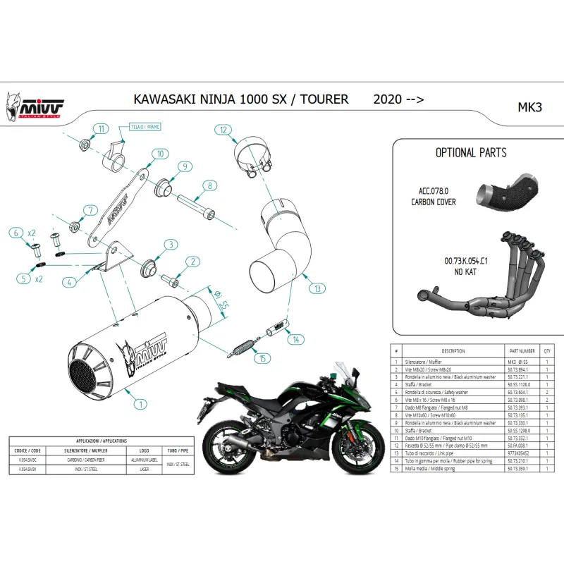 Mivv Kawasaki Ninja 1000 SX / Tourer Terminale Di Scarico Moto Marmitta MK3 Inox