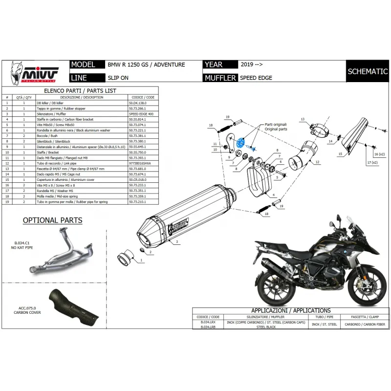 Bmw R 1250 GS / Adventure Mivv Tubo Elimina Kat Catalizzatore Moto Collettori Di Scarico