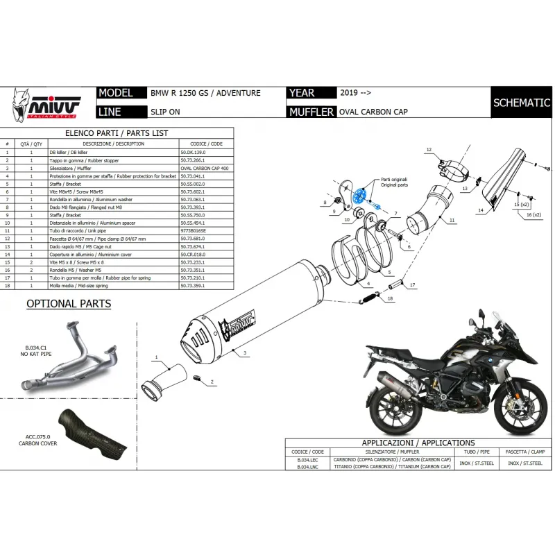 Mivv Bmw R 1250 Gs / Adventure Terminale Di Scarico Moto Marmitta Oval Carbon Cap