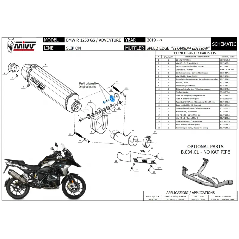 Bmw R 1250 GS / Adventure Mivv Tubo Elimina Kat Catalizzatore Moto Collettori Di Scarico