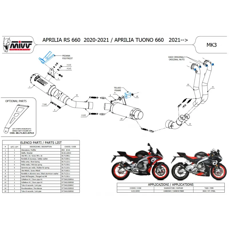 Scarico Completo Mivv Aprilia RS 660 Terminale Moto MK3 Carbonio Racing