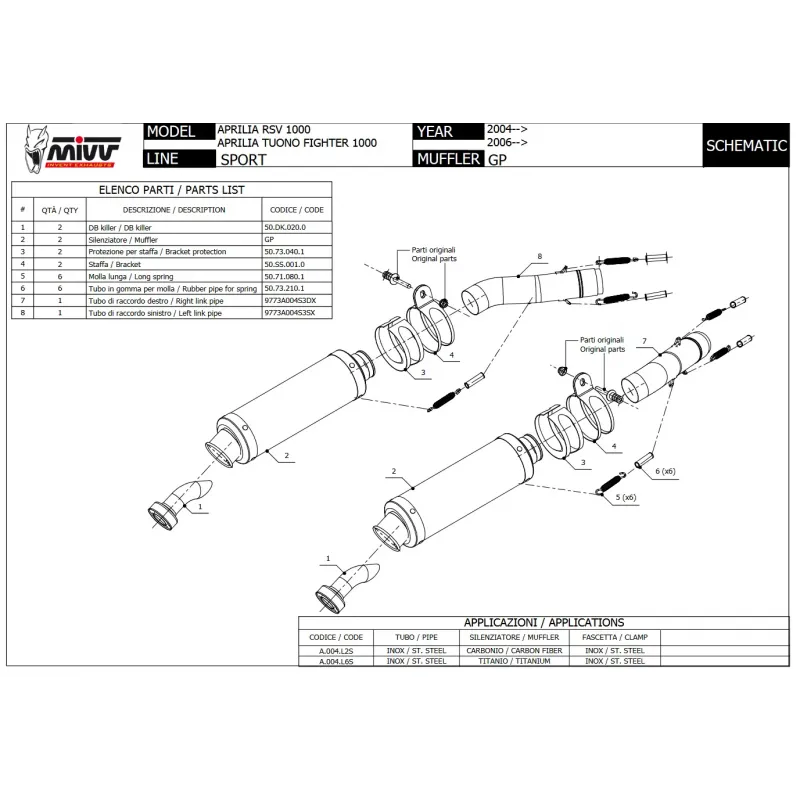 Mivv Aprilia Rsv 1000 04 - 2008 Terminali Di Scarico Per Moto Marmitte GP Carbonio