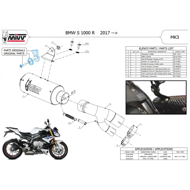 Mivv Bmw S 1000 R 2017 - 2020 Terminale Di Scarico Moto Marmitta Mk3 Carbonio Omologato