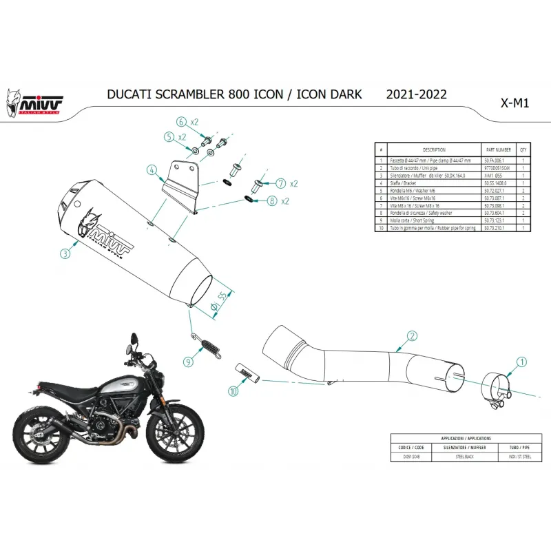 Mivv Ducati Scrambler 800 21 - 2022 Terminale Di Scarico Moto Marmitta X-M1 Inox Nero