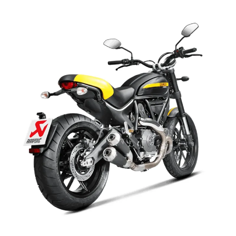 Dotato di un tubo di collegamento in titanio completo e senza pre-silenziatore, questo scarico splendidamente sagomato si adatta perfettamente al carattere del motore e offre un suono più nitido. Con un forte guadagno di potenza attraverso l'intera gamma di regimi, una coppia migliorata e un peso ridotto, questo scarico porterà sicuramente lo Scrambler al livello di prestazioni successivo. L'esclusivo sistema di scarico, con i suoi tubi conici ispirati al Grand Prix, conferisce un aspetto classico potente e le maniche esterne sono rivestite di nero per un look sportivo e intransigente. Sono stati creati catalizzatori rimovibili antirumore appositamente progettati per conferire alla moto un carattere doppio e offrire una scelta tra due diverse colonne sonore. Con il catalizzatore in posizione, il sistema di scarico è adatto per l'uso quotidiano, ma quando viene rimosso i livelli sonori aumentano, rendendolo perfetto per le occasioni speciali.