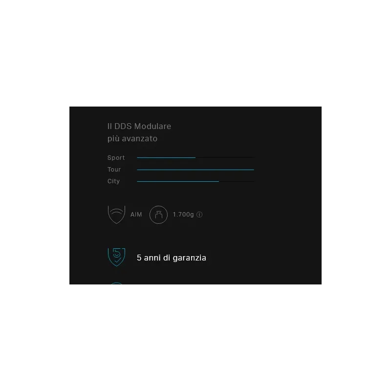 Calotta esterna realizzata in AIM (Advanced Integrated Matrix) composto da fibra organica e fibra di vetro con un'elevata capacità di assorbire gli impatti per distribuire l'energia e offrire una rigidità ottimale.