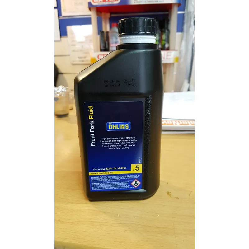 L'olio Ohlins ha caratteristiche tecniche elevate, infatti riduce totalmente gli attriti e favorisce la scorrevolezza della forcella. Le doti tecniche e la ricca dose di additivi, consentono elevati doti antischiuma, con il risultato della costante nelle regoazioni idrauliche, che restano tali anche dopo chilometri e chilometri di uso in circuito ed a qualsiasi temperatura .