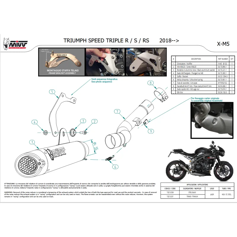 Mivv Triumph Speed Triple 1050 R / S / RS Terminale Di Scarico Moto Marmitta X-M5 Inox Nero