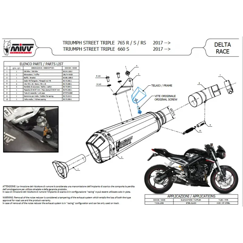 Mivv Triumph Street Triple 765 R / RS Terminale Di Scarico Moto Marmitta Delta Race Nero Omologato