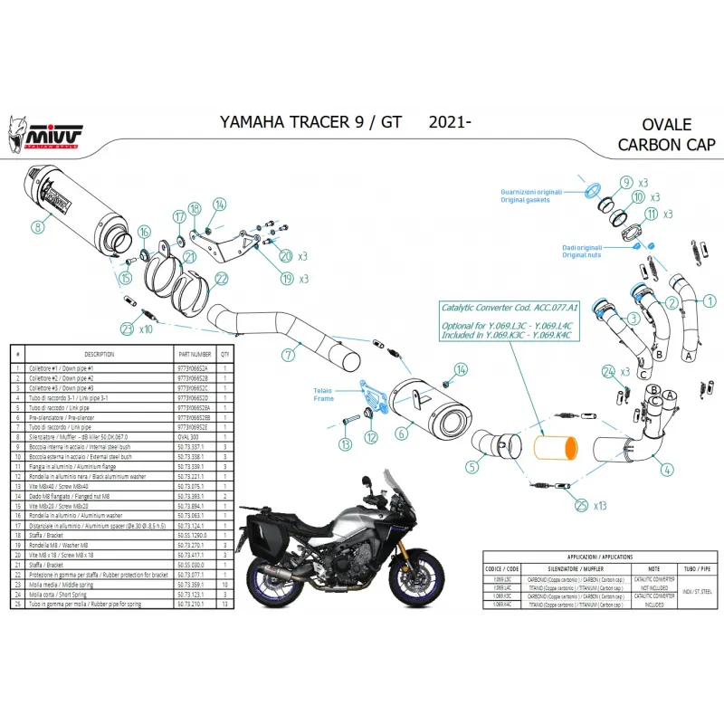 Scarico Completo Mivv Yamaha Tracer 9 / GT Terminale Per Moto Oval Titanio Carbon Cap