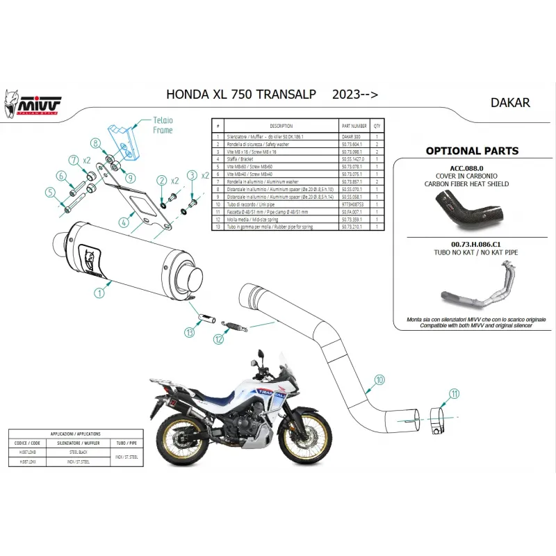 Mivv Honda Transalp 750 Terminale Di Scarico Moto Marmitta Dakar Inox Omologato