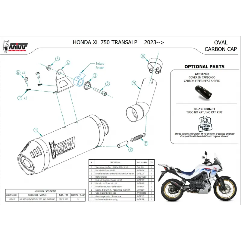 Mivv Honda Transalp 750 Terminale Di Scarico Moto Marmitta Ovale Inox Nero Omologato