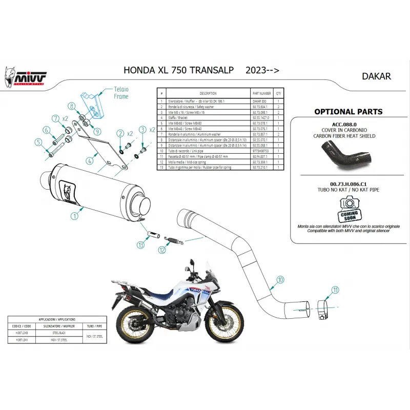 Mivv Honda Transalp 750 Terminale Di Scarico Moto Marmitta Ovale Inox Omologato