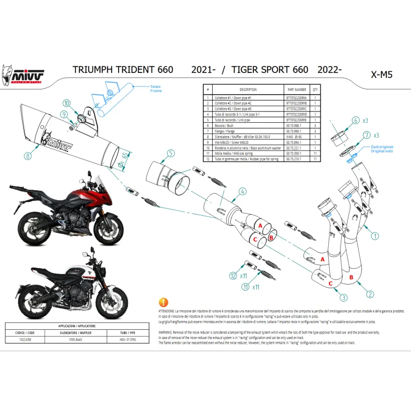 La linea Mivv X-M5, frutto dell’esperienza acquisita nei Campionati mondiali MotoGP, Moto2 e Moto3 è la perfetta sintesi tra stile racing e performance. Dal design ispirato agli scarichi realizzati per il Motomondiale, il terminale X-M5 ha una forma conica e dimensioni compatte in grado di sprigionare l’accattivante sound MIVV.