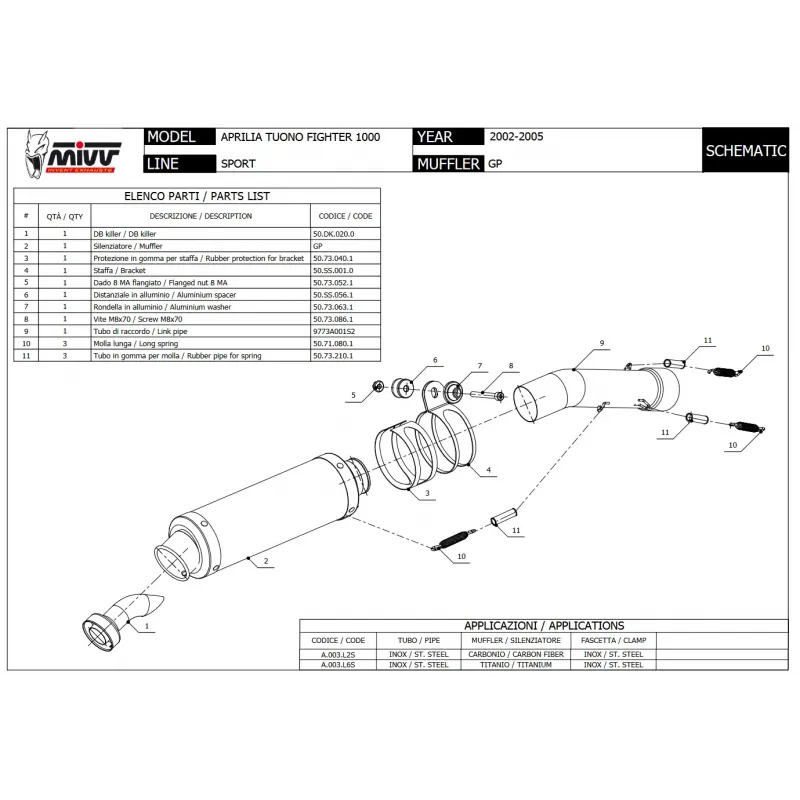 Mivv Aprilia Tuono Fighter 1000 02 - 2005 Terminale Di Scarico Per Moto Marmitta Ovale...
