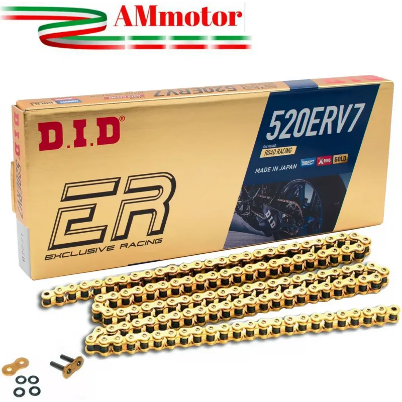 La catena passo 520 ERV7 dall'eccezionale scorrevolezza, non esclusivamente per utilizzo agonistico, sebbene sia impiegata su motocicli da corsa di tutte le cilindrate, le sue caratteristiche di robustezza (carico di rottura 39,5 KN) ed affidabilità (rapporto di durata 34.1) la rendono la scelta ideale sia per il pilota più esigente sia per il motociclista che voglia sostituire la propria catena con una più stretta e scorrevole (utilizzare una catena stretta vuol dire avere meno dispersione di potenza nella trasmissione finale e quindi più cavalli alla ruota!).